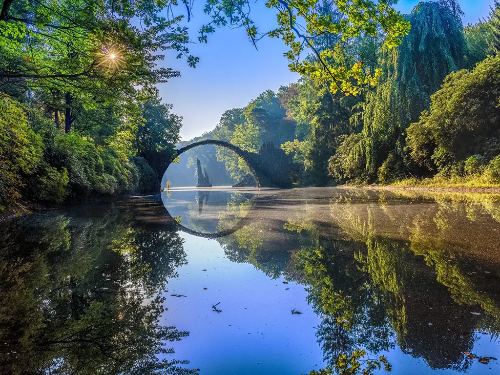 Гэты каменны мост, які пабудавалі ў XIX стагоддзі, вядомы сваім ідэальным кругавым адлюстраваннем у вадзе. Падобных мастоў было шмат. Па легендзе, майстар, які будаваў мост, прадаў душу першага чалавек, што перасячэ мост, д’яблу. Казачная атмасфера маста і маляўнічы краявід робяць яго выдатным месцам для фота.