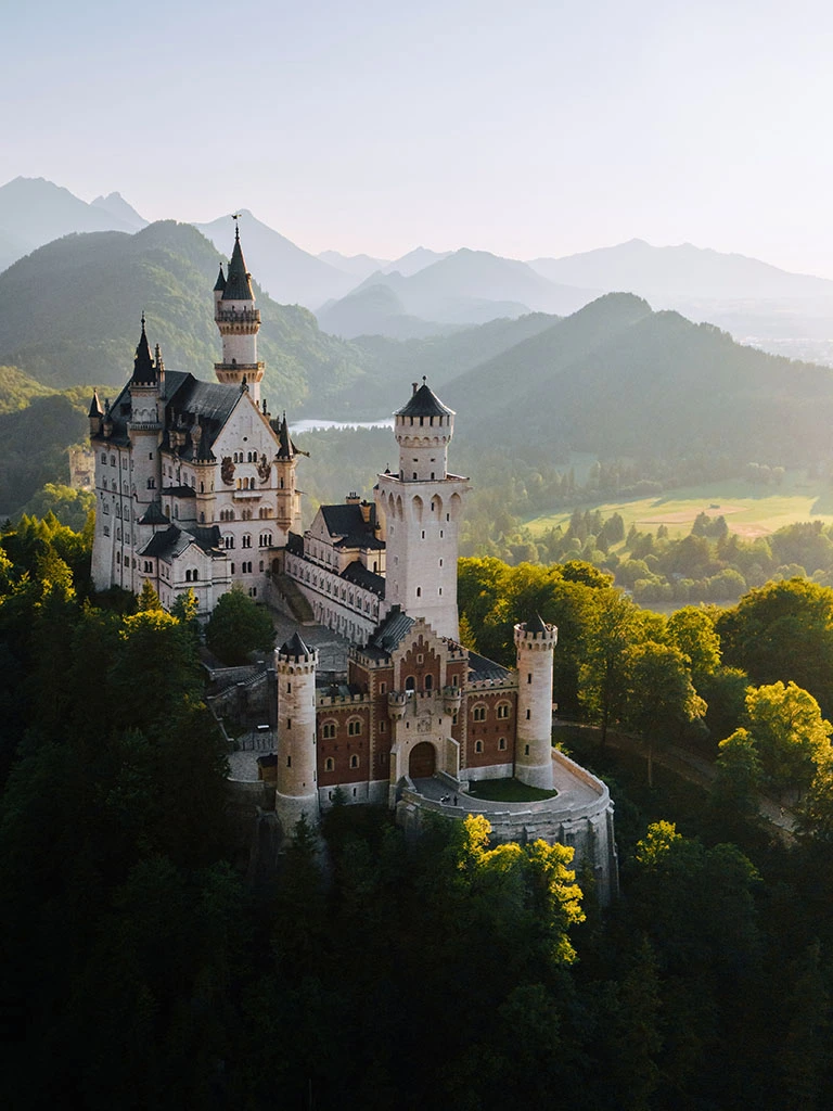 Замак Нойшванштайн у Баварыі — адзін з самых фотагенічных замкаў у свеце. Гэты казачны замак у асяроддзі гор і лясоў выглядае цудоўна ў любы час года. Замак пабудавалі ў XIX стагоддзі, а ў часы Другой сусветнай вайны нацысты выкарыстоўвалі яго для захоўвання нарабаваных твораў мастацтва.