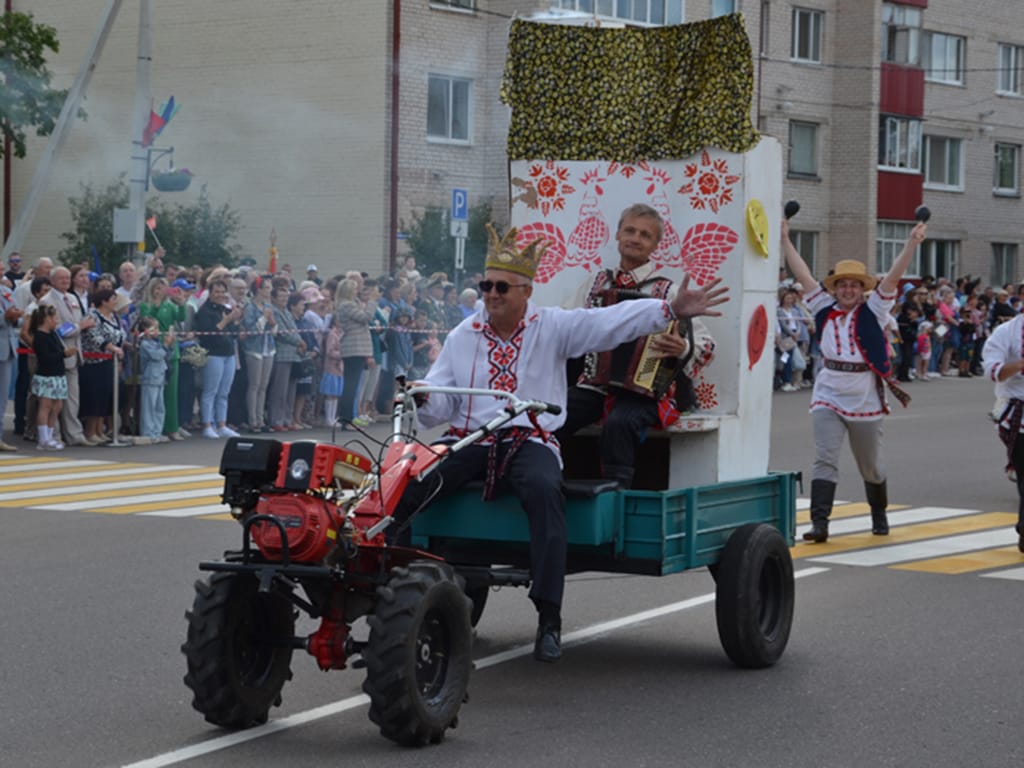 Кардонныя гербы і вялікія чырвона-зялёныя сцягі на галоўных вуліцах беларускіх гарадоў — так рэгіёны адзначалі Дзень Незалежнасці. Кожны беларускі раён спрабаваў вылучыцца: на Віцебшчыне дадалі іскрынку (то бок супрацоўніка НКВД) у тэатралізаванае шоу, на Міншчыне пілі малочныя кактэйлі з тварамі чыноўнікаў, а на Гродзеншчыне «беларусы зліліся ў адну сям’ю».