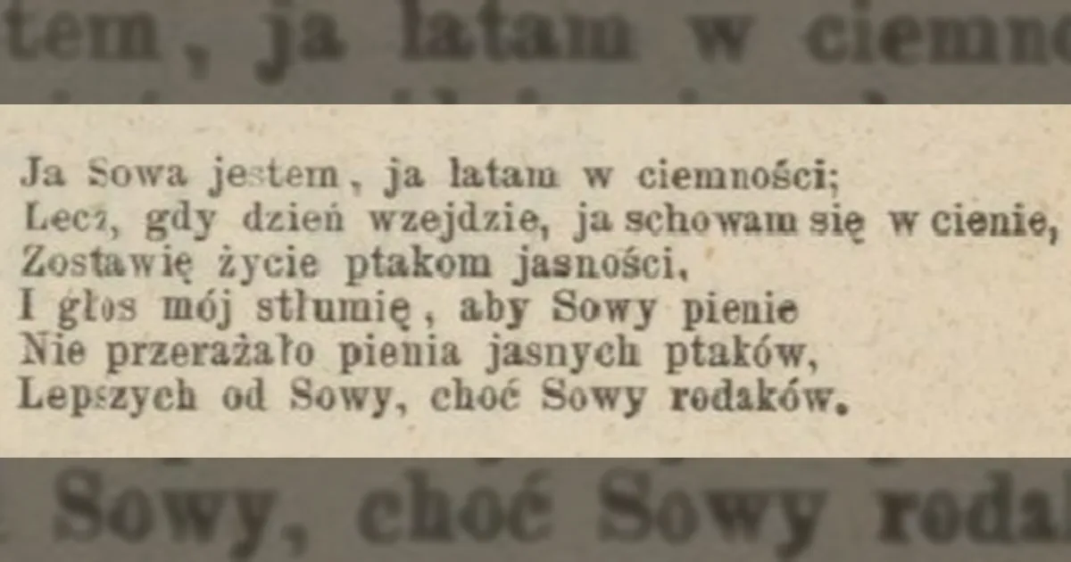 Гэтыя радкі з’яўляюцца пралогам Эдварда Жалігоўскага да яго творчасці пад псеўданімам Антоні Сава. У іх паэт тлумачыць свой выбар і месца ў літаратуры — як «начной птушкі», чый голас не павінен замінаць «начной птушкі» спевакам.