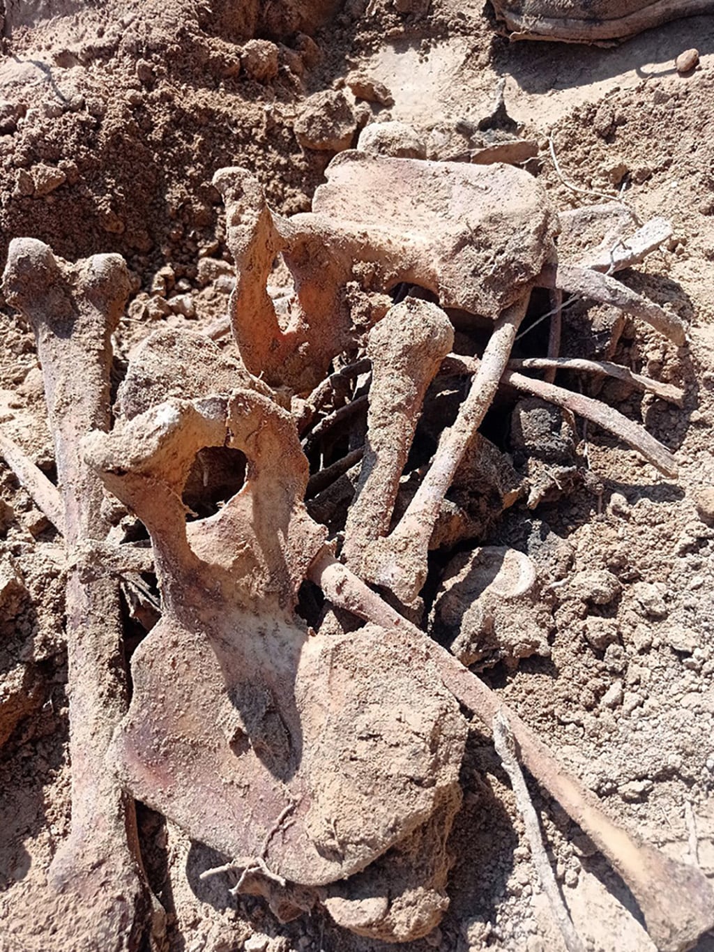Першыя чалавечыя косці знайшлі 8 жніўня на схіле адразу за бальніцай. На глыбіні паўтара метра сталі адкопваць усё новыя парэшткі. Рабочыя даставалі косці і складвалі іх у вёдры. Па іх словах, шкілеты ляжалі пластамі, адзін на адным. Некаторыя знаходзіліся ў палажэнні стоячы. Разам з касцямі былі выяўлены элементы адзення, абутак, цвікі і ўпрыгожванні.